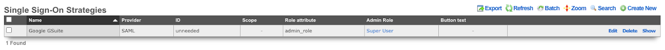 Screen space limitations dictate that a reduced set of fields be present in the list view. Using the show link gives access to the other fields stored in the record. In addition to payload fields, meta-data fields such as the create and last update time, as well as the creator's administrative login and last updater may be seen in the detailed display.