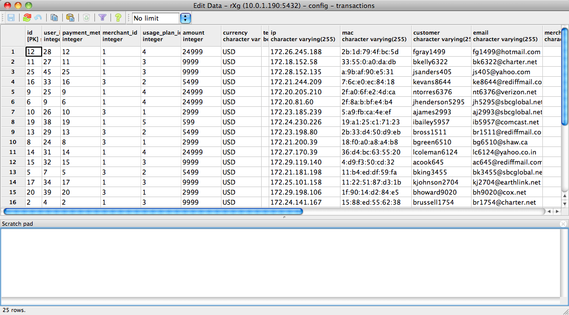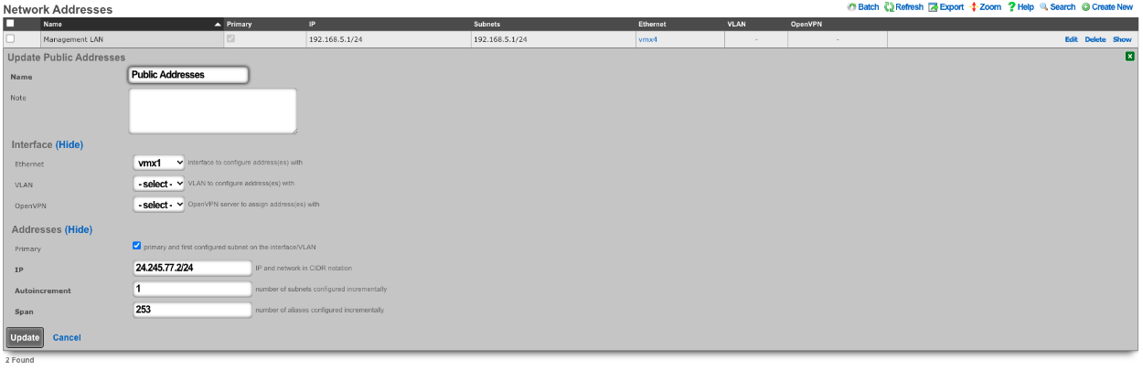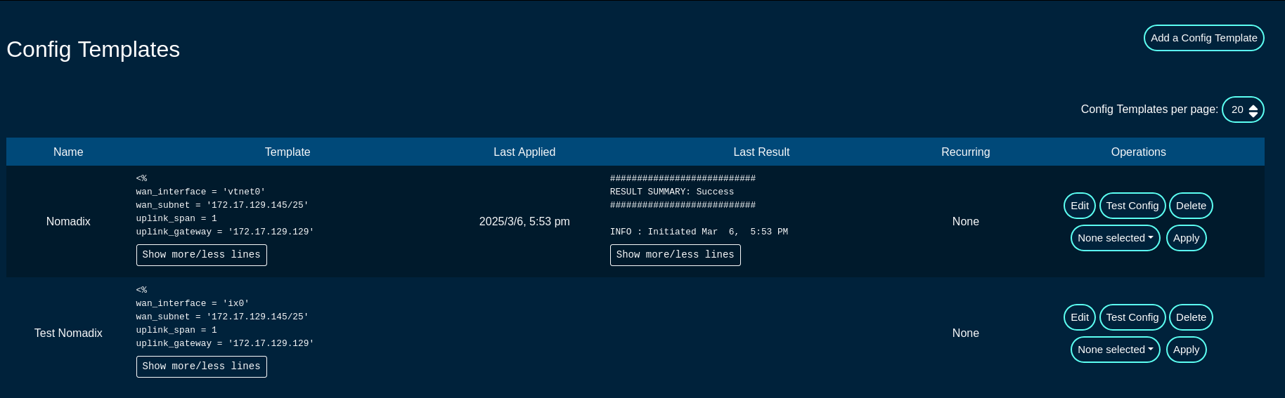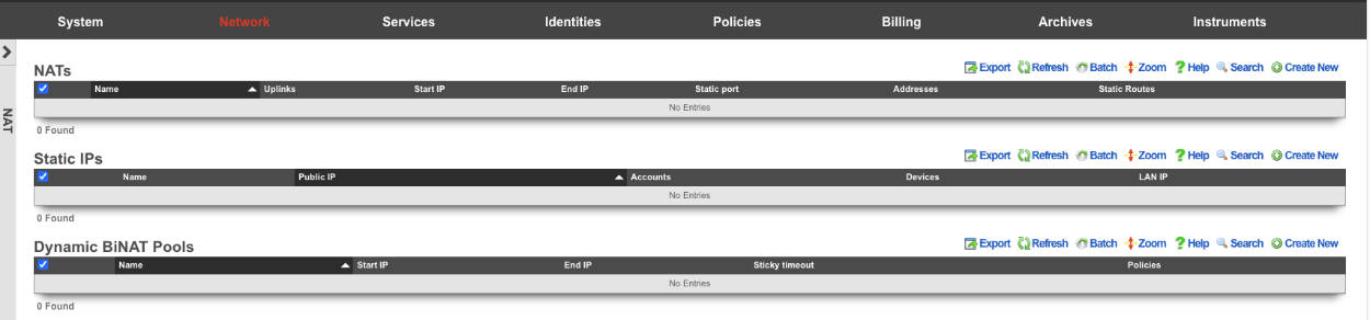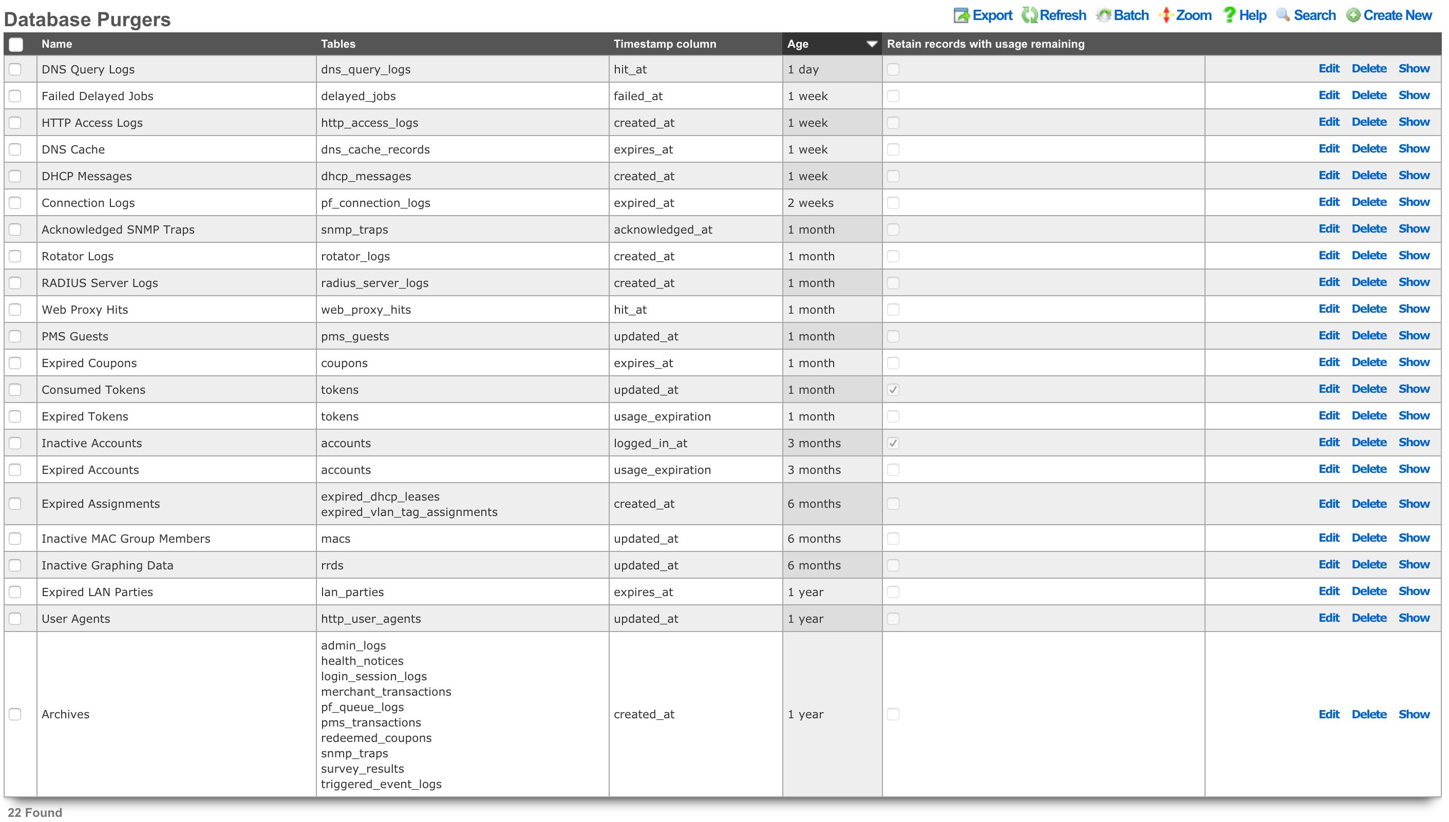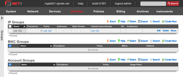 Operator manipulation of data in the rXg administrative console is accomplished through AJAX enabled scaffolds. Each view consists of one or more scaffolds for various data aspects that can be manipulated to configure the subsystem.