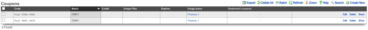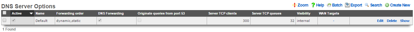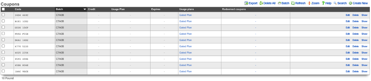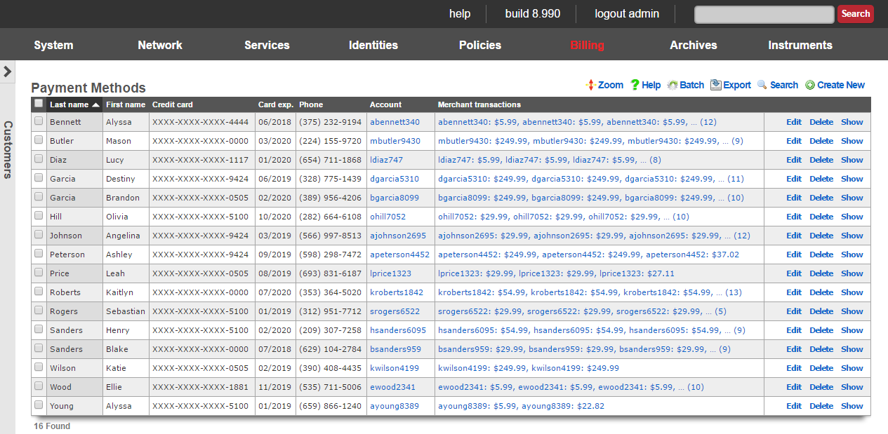 Clicking on the show link at the right of each record displays all of the detailed information available for that record.