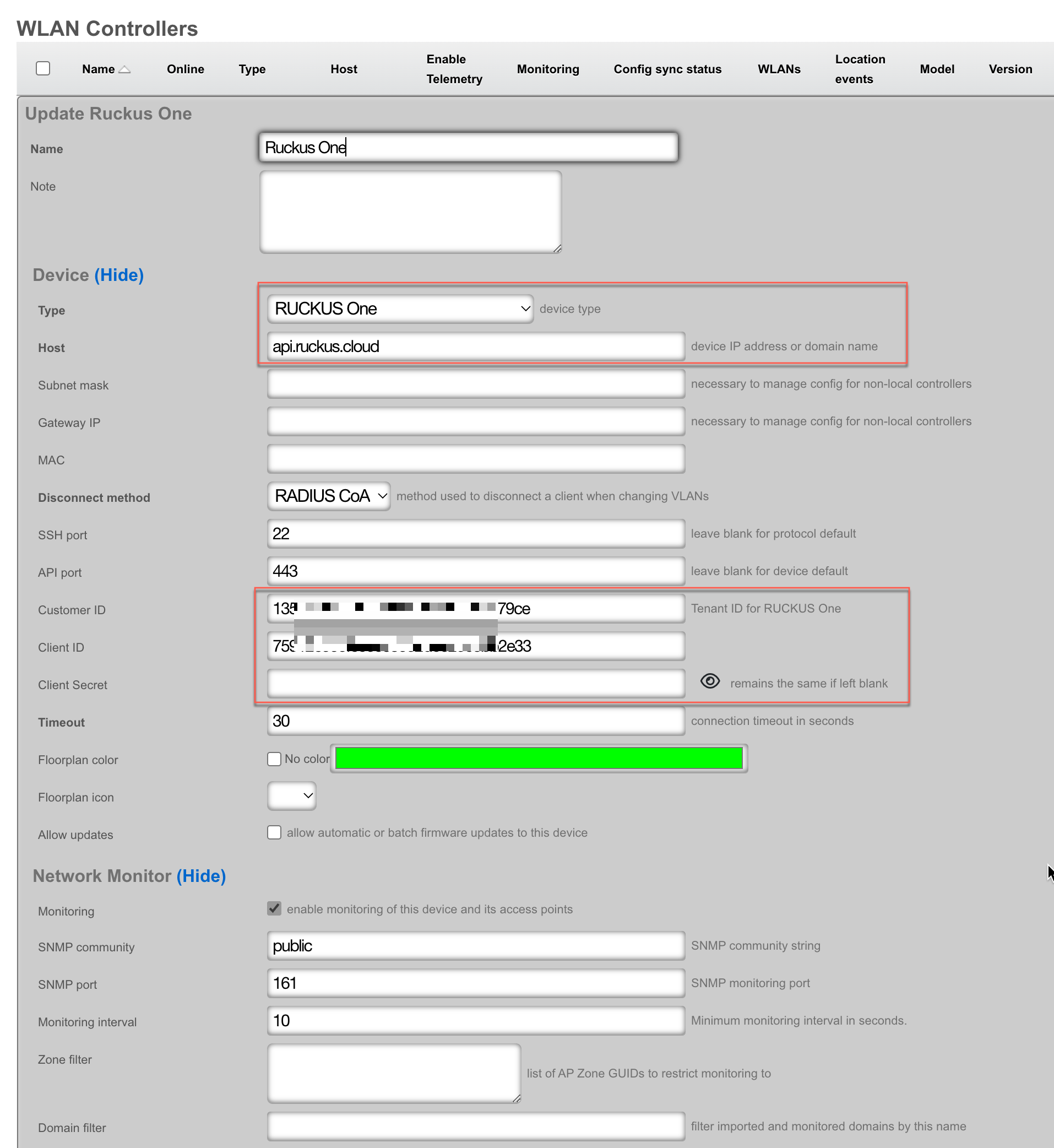 Client ID - This can be found by browsing to Administration >> Account Management >> Settings in the Ruckus One portal. Client Secret - This can be found by browsing to Administration >> Account Management >> Settings in the Ruckus One portal.