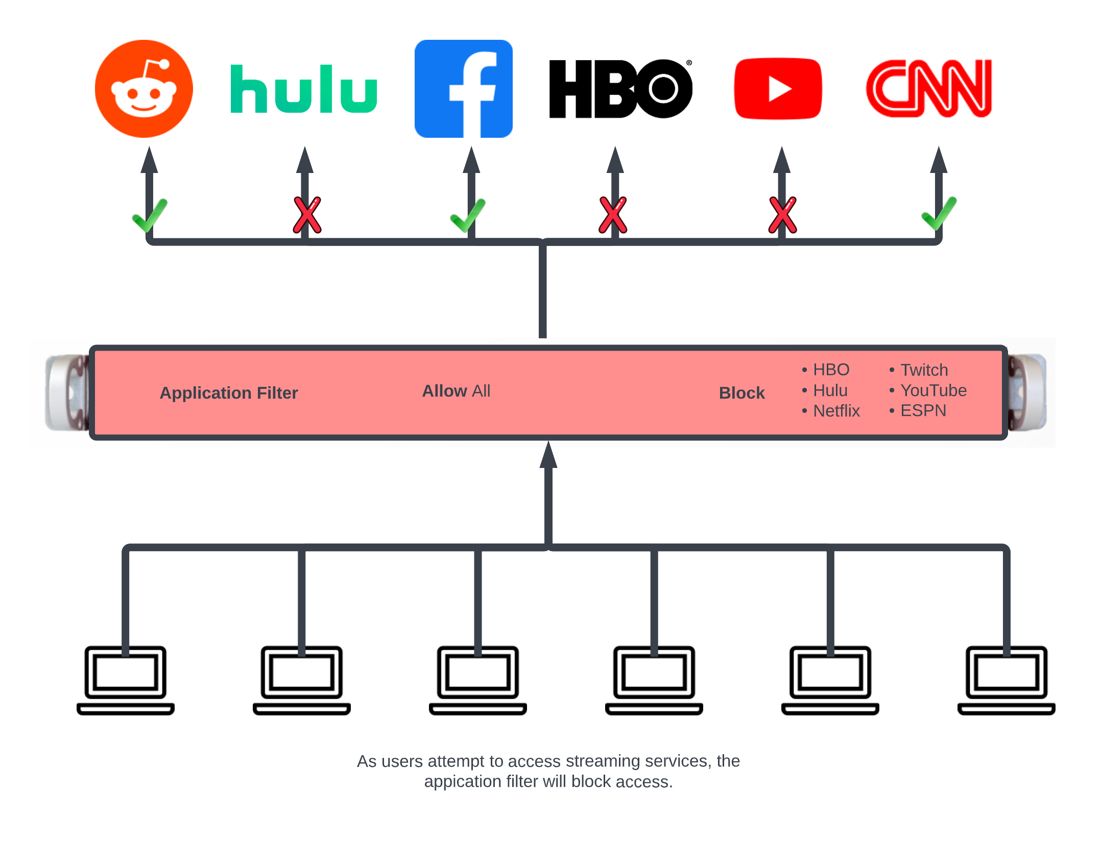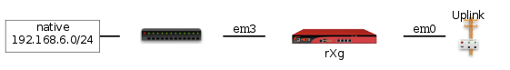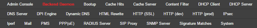 Each of the buttons of the main menu represents a subsystem of the rXg. The primary link on each button leads to a dashboard of that subsystem. The menu text of the primary button becomes red to indicate which subsystem is currently being viewed.
