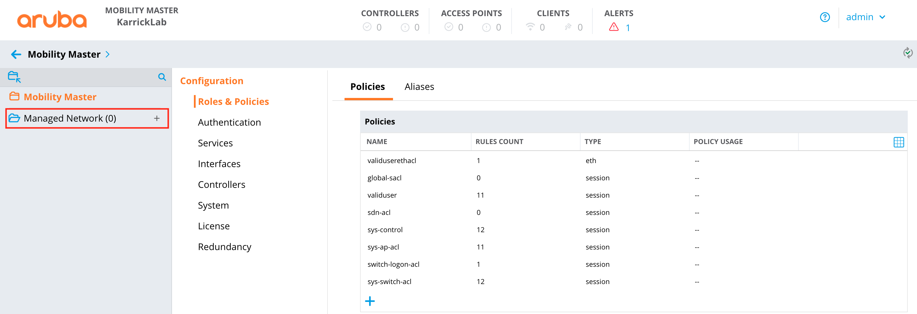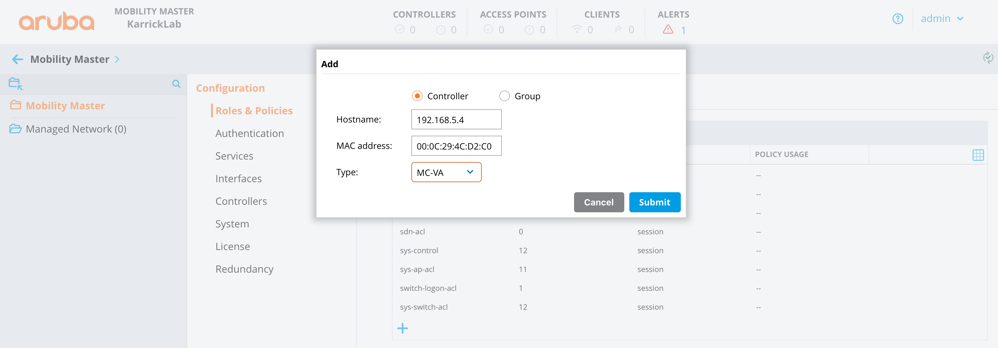 The rXg will import the WLANs and AP's from the Aruba controller.