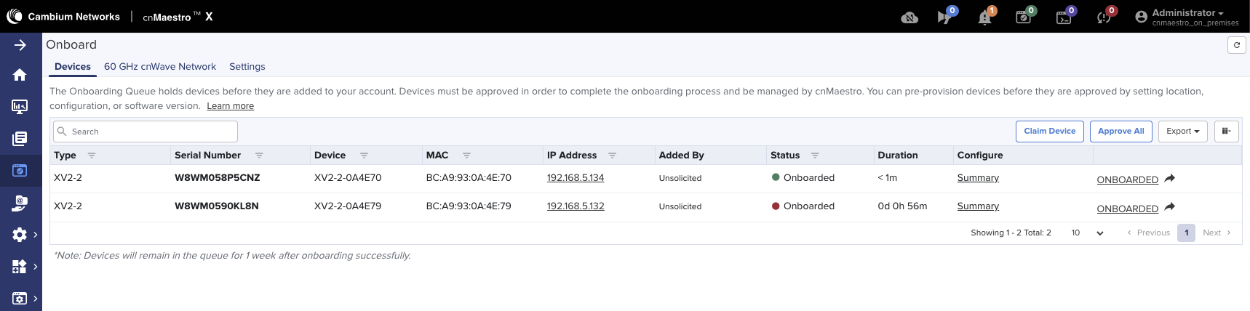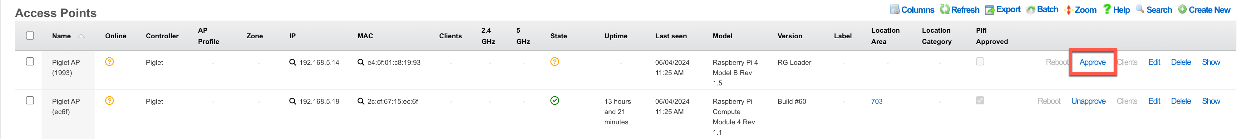 In the Network >> Wireless view of the rXg, scroll down to the Access Point Radios Scaffold and see if there are new WAPs:
