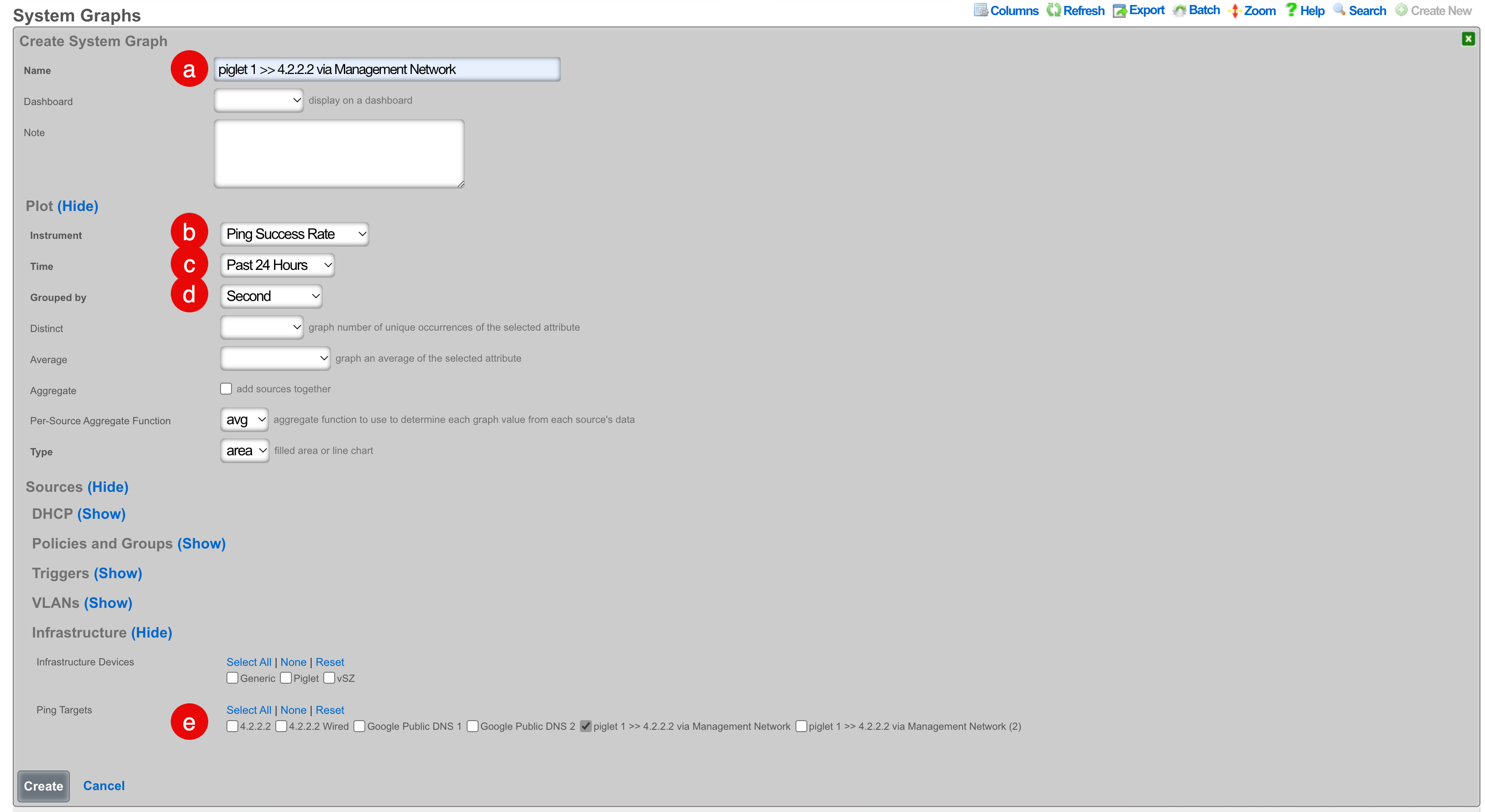 In order to do this, setup a new custom dashboard with the Cisco Telemetry health check widget on it. Widgets and dashboards and dashboard configuration is covered in the Archives >> Reports section of this manual, but here is an example of configuring such a widget.