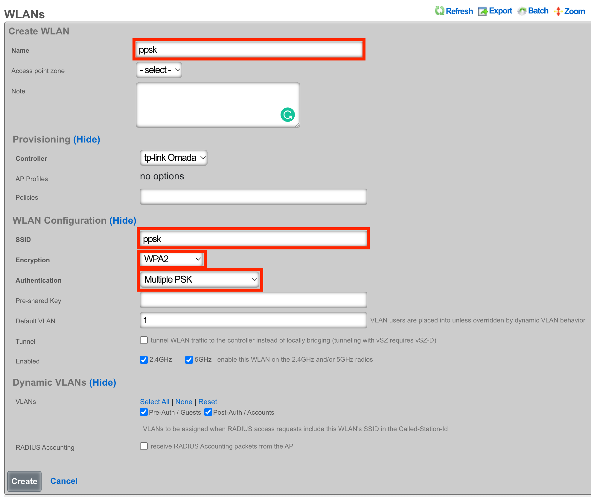 Navigate to Network::Wireless and create a new WLAN Controller.