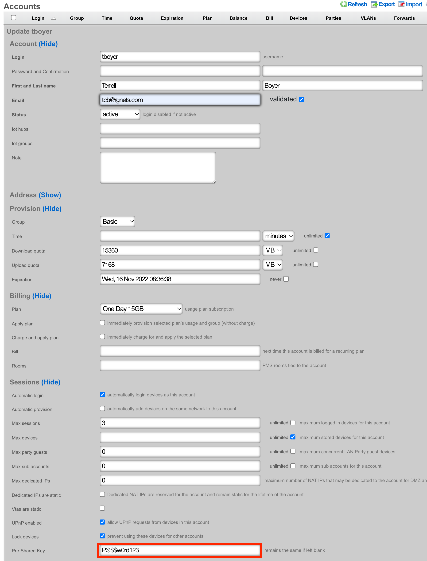 To ensure authentication and non-repudiation of operator actions, each rXg administrator must have their own individual account protected by a set of strong credentials. Shared accounts and role accounts must be avoided as they represent a breach in security protocol.