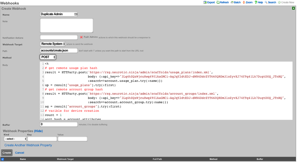 The rXg also supports direct API access to the console web application via HTTP. When an administrator record is created, the API key field is automatically populated with a random string. The operator must pass the generated value of the API key field, as a CGI parameter named api_key, to the console web applications controllers and actions.